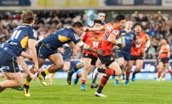 Home»Super Rugby»ACT Brumbies»Brumbies overrun the Sunwolves»Sunwolves winger, Akihito Yamada breaks through the Brumbies’ defence.