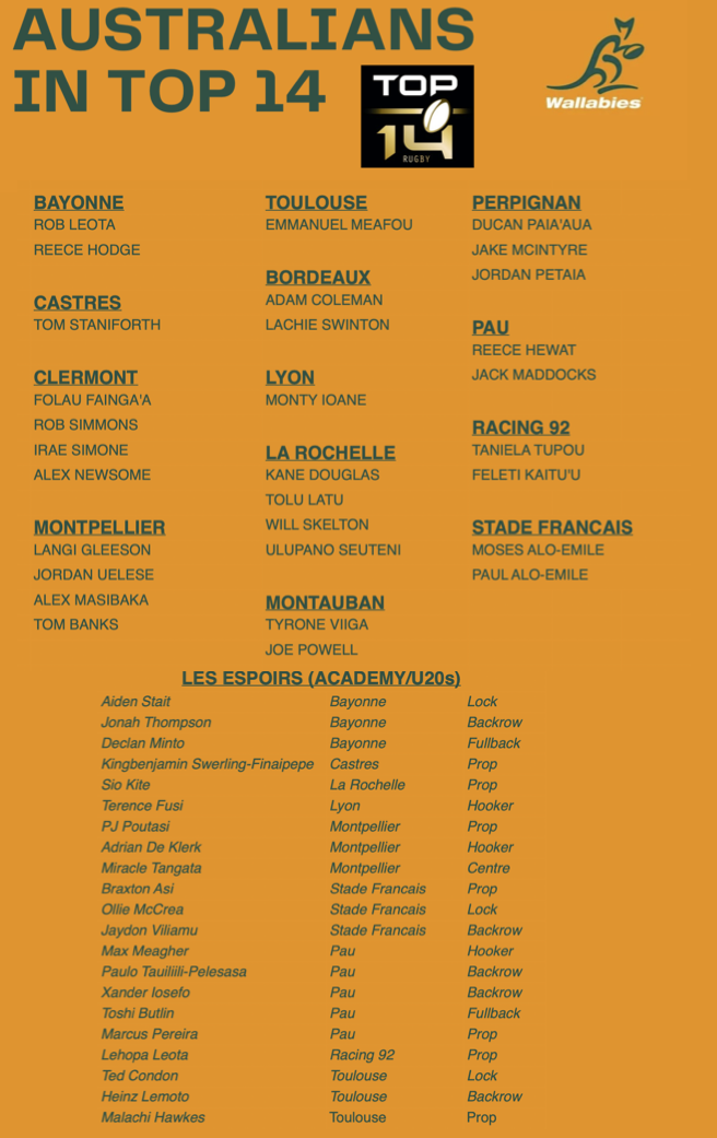 RA needs to establish a U20s - France team to play against NSW/QLD & ACT in the futureI'll cross post here Adam. I didn't actually have Pereira in my original data because all.rugby has him as a Kiwi.