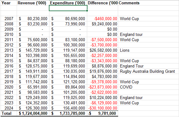 On the face of it, it is. But there is a heap of cash (like $50m) that has already come in that is being deferred until Lions.Headline should read "2024 worst financial year on record" thanks for pulling this together