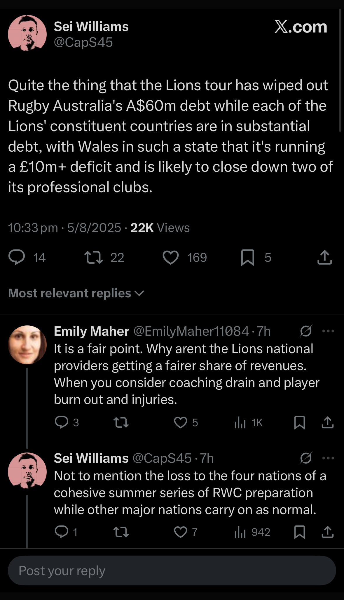 Also, lol Wales probably had the best RWC27 preparation out of any nation with no players missing.