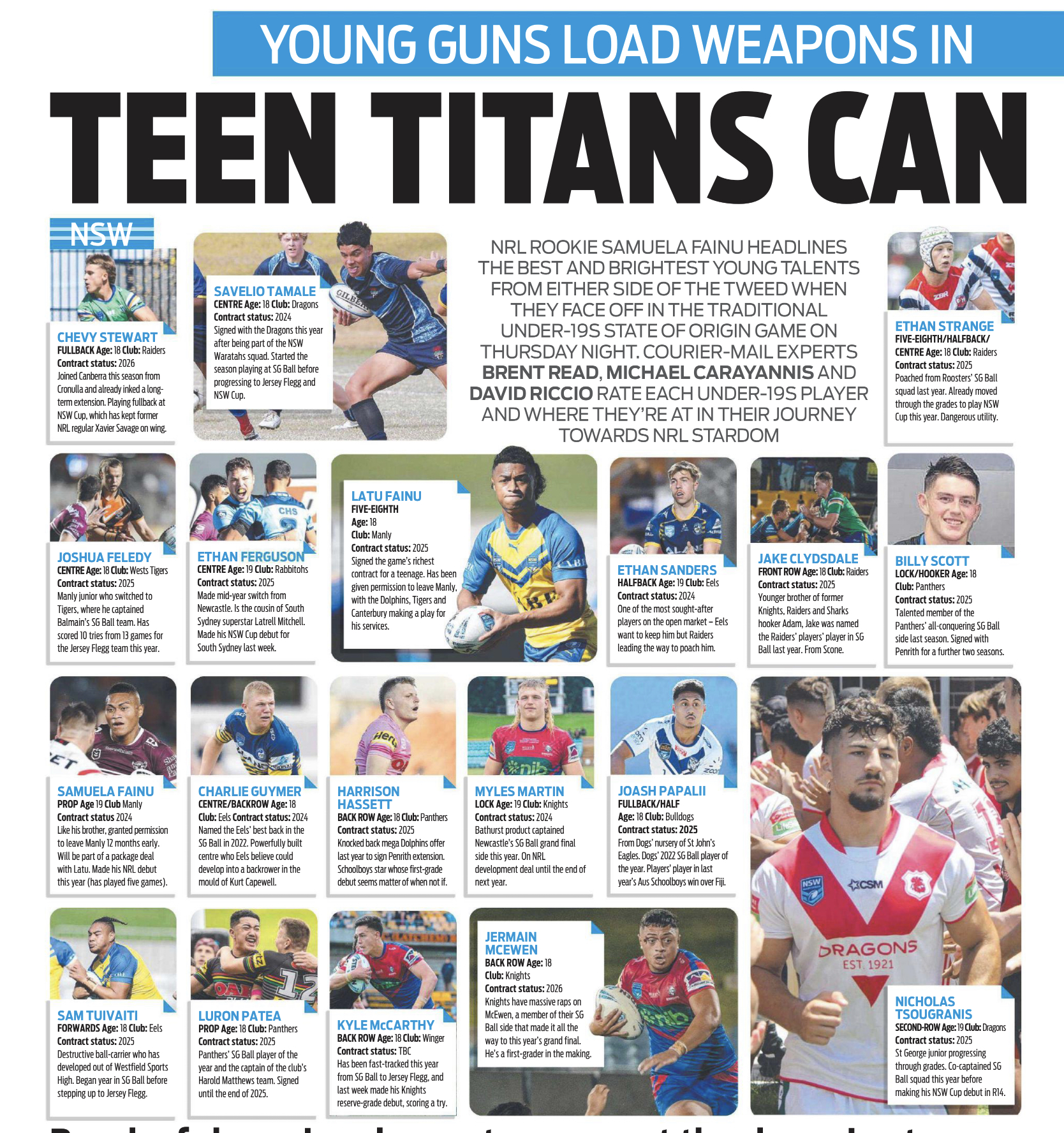 Those people have 0 idea how professionalism works in 2023People complain that players are offered contracts straight out of school before they've proven themselves, but this NSW v QLD U19 team lineup highlights the issue faced in recruiting and retaining young talent in the game. Every player is contracted and most of them out until 2025. Plenty of union talent in these teams also.