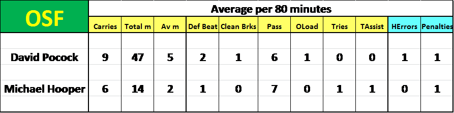 Pocock has shown the better running game with more ball carries and more m/carry plus more Def Beaten, Clean Breaks and Offloads.