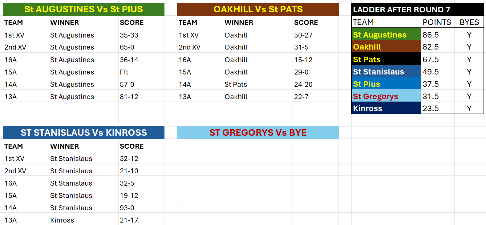 Eg: St Pius 1st XV has lost narrowly to Auggies and Oakhill - I certainly wouldn't want to be playing them in the semi.