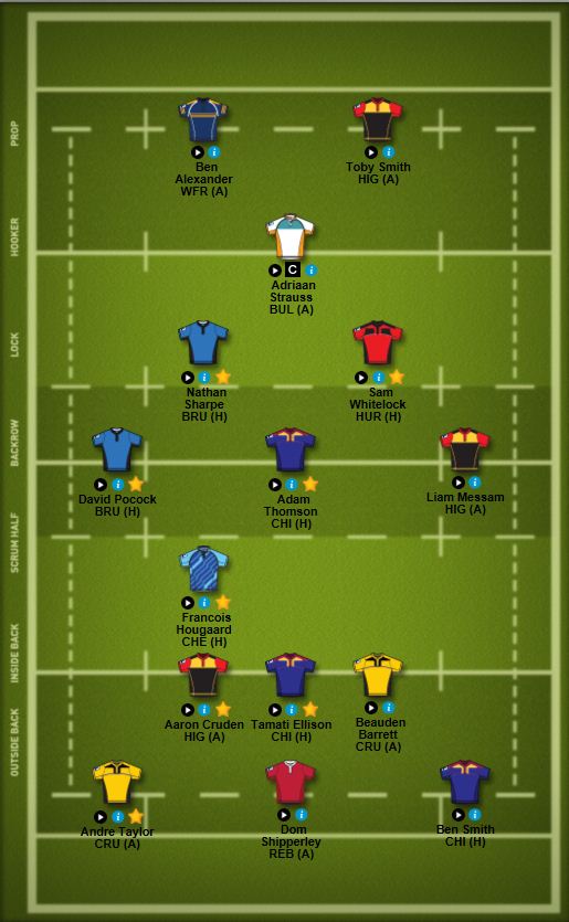 Inside Backs: SBW (Capt), Andrew Smith, Fruean, (Cruden) - I'm worried that Cruden may get hooked early given he's under a bit of an injury cloud. Of course now that I've benched him I'm sure he'll do great & Smith will be well contained in another dour Aussie derby.....