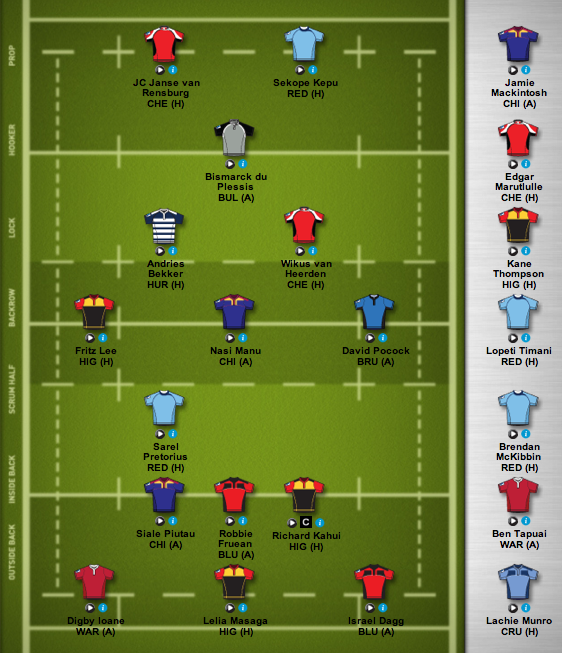 Really tempted by Habana, seeing as he's at 13. But I don't know who I'd replace out of Ioane, Lambie and Ranger. Thinking Ranger, as he's a huge scored, but really up and down...and I am not sure that Ranger will score as well from 13 as he seemed to from the wing.