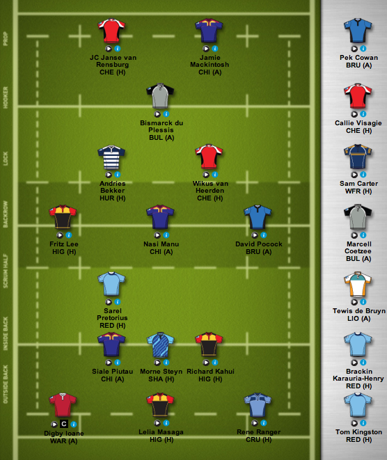 JC Janse van Rensburg, Battleship, Bekker, Nasi Manu, Fritz Lee (although he is on my bench), Pretorious B.I.G, and Diggers.