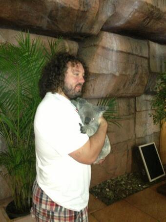 The Koala's bind on his arm proves that our scrum problems are bred of this hot dry land.