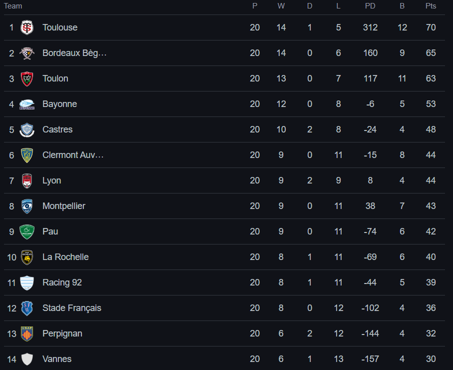Toulouse have some serious injuries. No Mauvaka, no Dupont, no Blair Kinghorn. 3 of their 5 biggest players. Away at Bordeaux, one thinks this could be a very close match. Bordeaux are missing Adam Coleman, Swinton, Janse Van Rensburg and potentially Tatafu will be back this weekend. Decent injuries but no where near as important as Toulouse's.