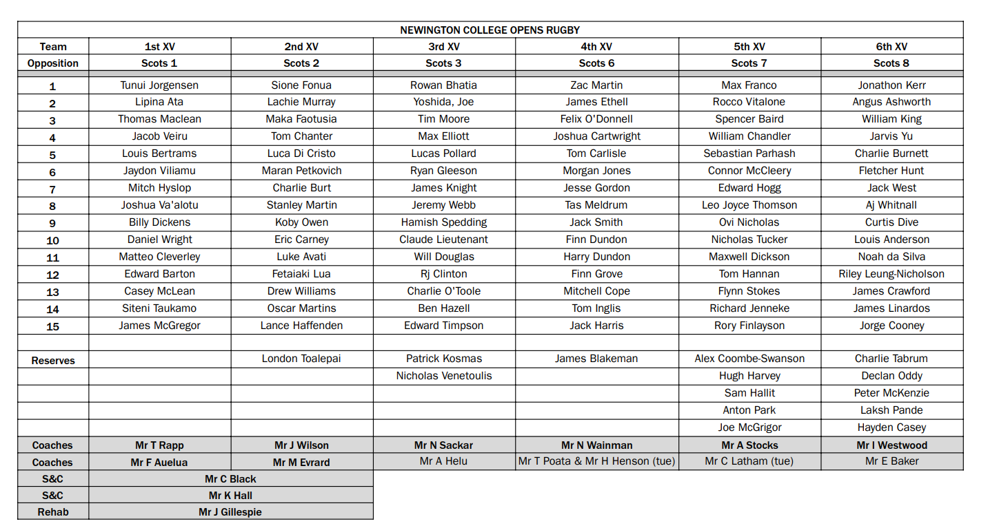 With about 9 players unavailable, clearly, Newington 's Depth with be tested. As I write the weather with it's rain, will most likely favour a slower, forwards based game.Reminder that this is very early trials, and there is definitely some experimenting going on and Jesse McLean (previously no 13.) and Oliver Townsend (usually number 10 or 12) are unavailable for the firsts.