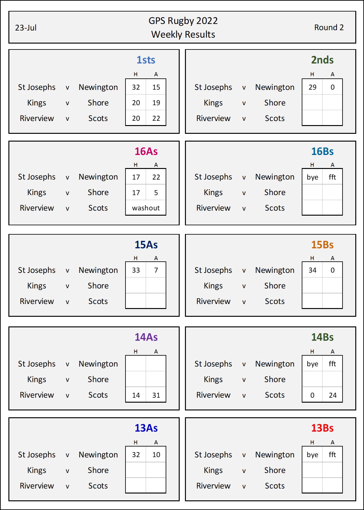 All the Scot’s Vs Riverview matches apart from the 14s and some opens were washed outCan you help today?