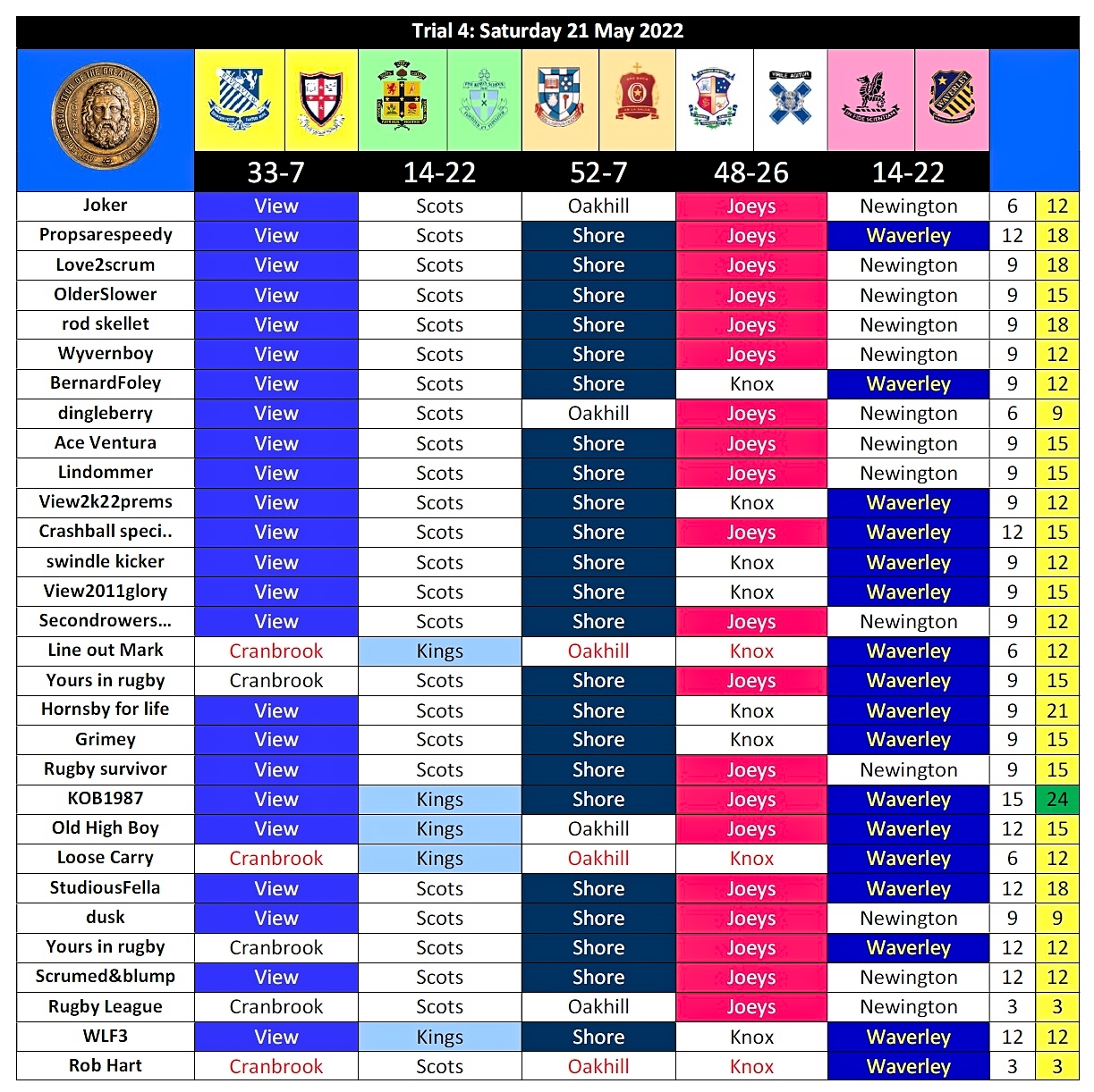 Why are Shore so hot and cold? Last week at Waverely about half the team were out with influenza (only 9 players trained during the week) combined with the usual one or two injuries. The Shore 12 is usually player of the match and was missing due to injury against Waverly, as was their number 1 in his third seasons in the firsts. Some of the Shore players took the field sick (and I think I saw one boy vomit on the field), but take nothing away from the Waverley outside backs - four of their tries were 90 metre jobs where they just beat the Shoremen with speed and ball skills. Also sure that Waverely had the same flu dramas as Shore and all the other schools. Waverley were clearly the better team in the firsts on the day. The seconds (24-22 to Waverley) could have gone the other way and would have if it wasn't for the worst refereeing decision I've seen for a while (penalty advantage in front of the posts twenty metres out, Shore missed the field goal and then the ref blew full time . . . apparently he 'forgot' he had his arm up for advantage when the field goal was on)