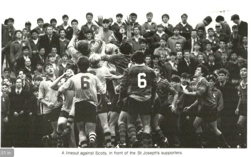 A large crowd, estimated between 8,000 and 10,000 assembled at Bellevue Hill to witness what was to be a memorable match. The Scots team easily out-weighed the small St Joseph's pack and their distinct height advantage ensured plenty of possession for Scots from line outs. (keep this in mind)