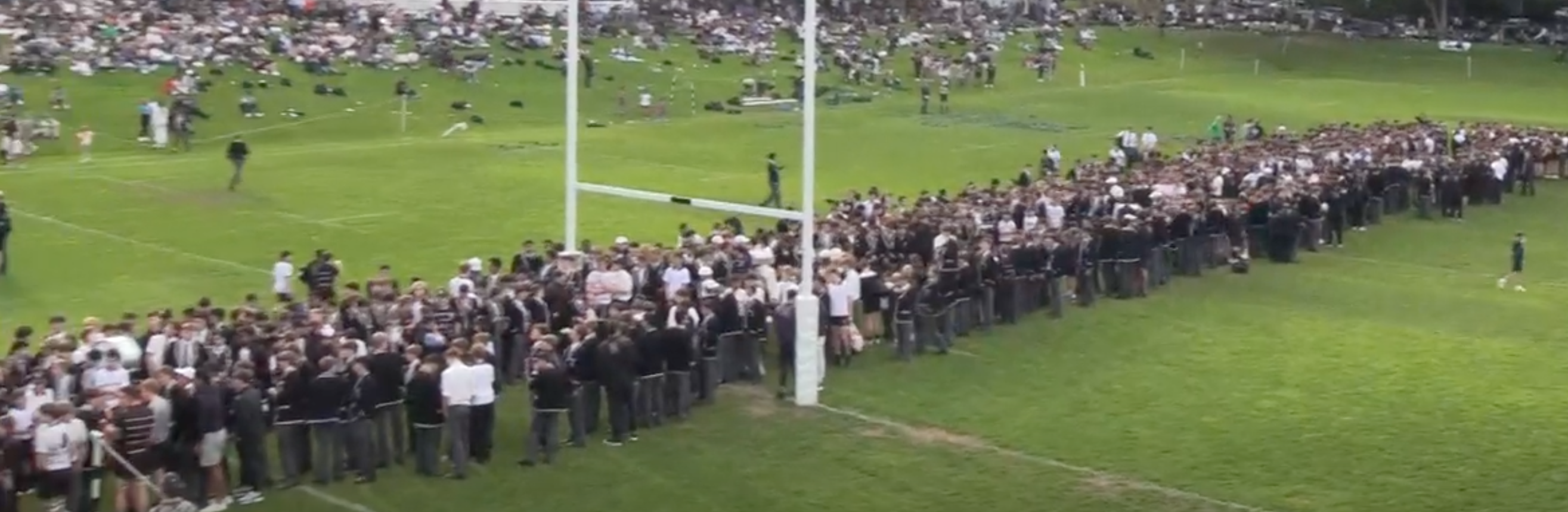 What I saw, was the entire school THERE, but not the entire school (this screenshot) watching the rugby and getting involved in the war cries. You even saw boys sitting on the grass watching near their school but not participating in the chants, etc. I remember Newo much differently.