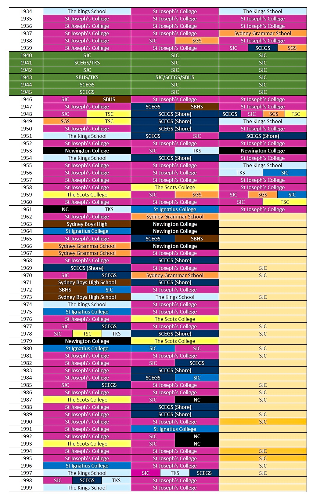 Great.Joker, it wasn’t an official comp but I can inform you that in 1987 the Kings 3rd XV was undefeated, and by default they must have been premiers. It’s possible they drew with Joeys, I can find out if you like.