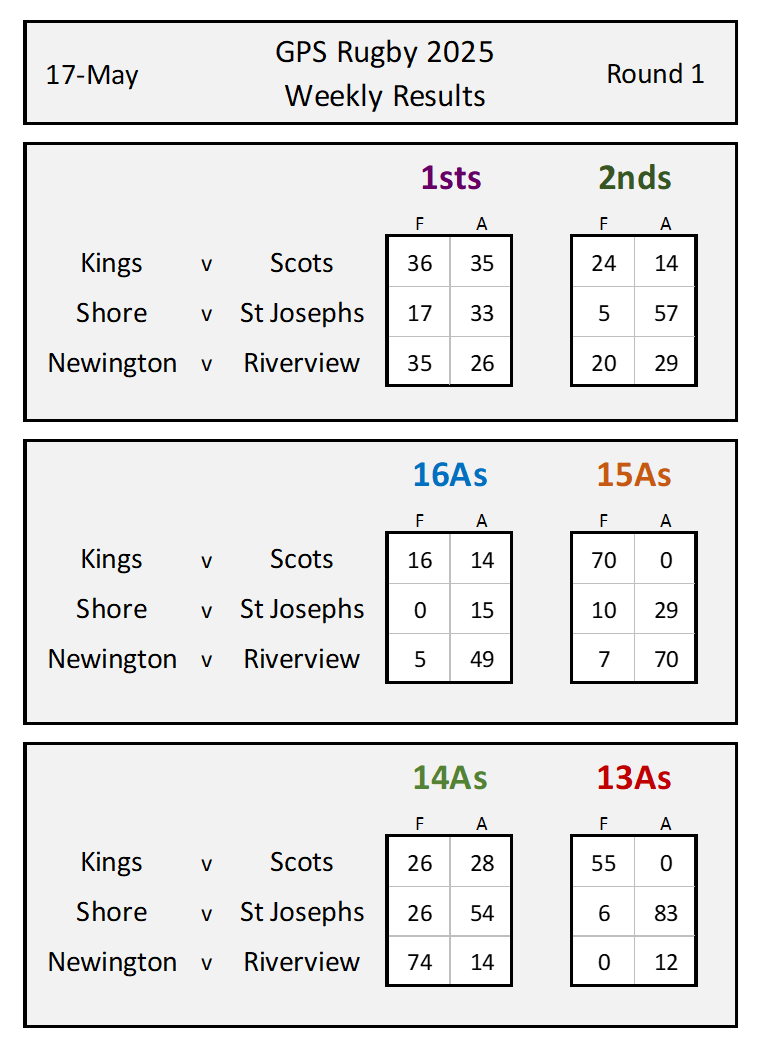 Thank you for these scores. They provide a cross check for the relative strengths of TAS and High playing a Sydney school.
