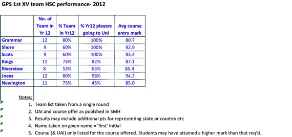 In respect to Newington, where less than 1/2 of the 2012 1st XV team are offered places in tertiary education then I wonder where the benefits are. Maybe the athletes need to be at this privileged school for 6 years to get whole of education benefits, not just 2 years?