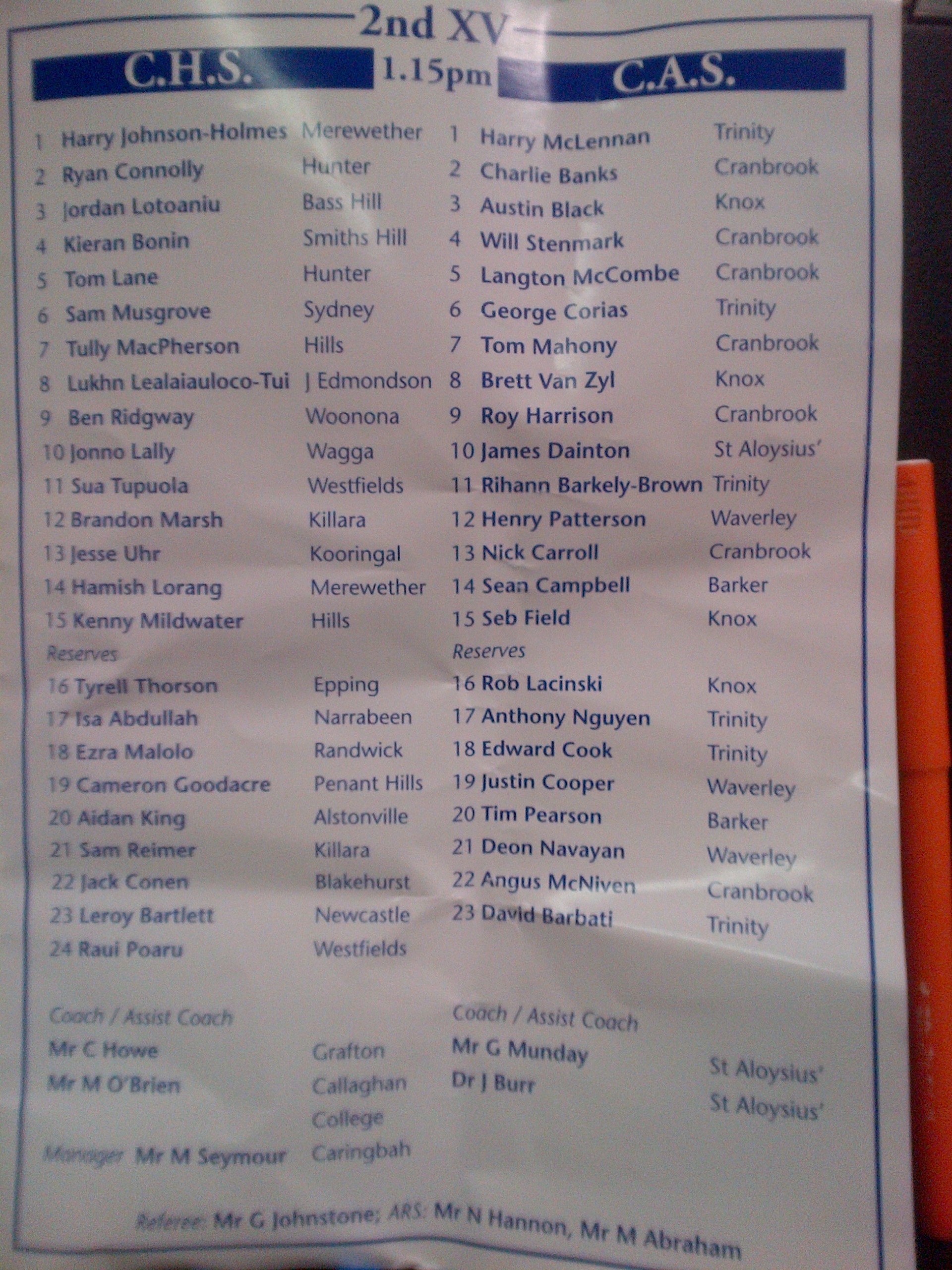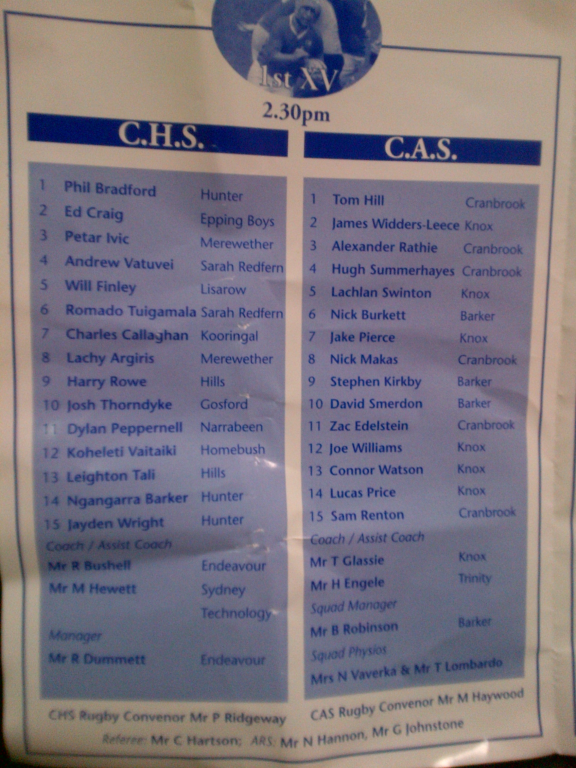 They must be something in the water up Newcastle/Hunter way, a big chunk of the CHS 1 and 2 teams hail from up there.CHS I and CAS I XV teams at Cranbrook - 5-6-14