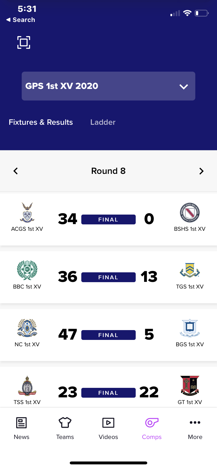 The Churchie Bshs game was 34-17. It appears state high weren't using the Matchday app to score. If you look through the results in all the age groups you will see lots of nil scores. They just didn't score in real time using the app