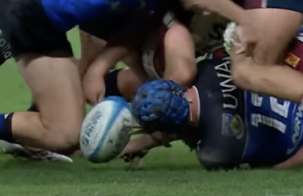Yeah Stewart places it back into the Force hand you can see above the ball in the frame before this and it rolls forward, then McReight rakes it - correct decisionI can see what your pointing out. Just watched it again. He didn't play at the ball, was cleaning out but his hand does look like it touches the ball and it goes forward