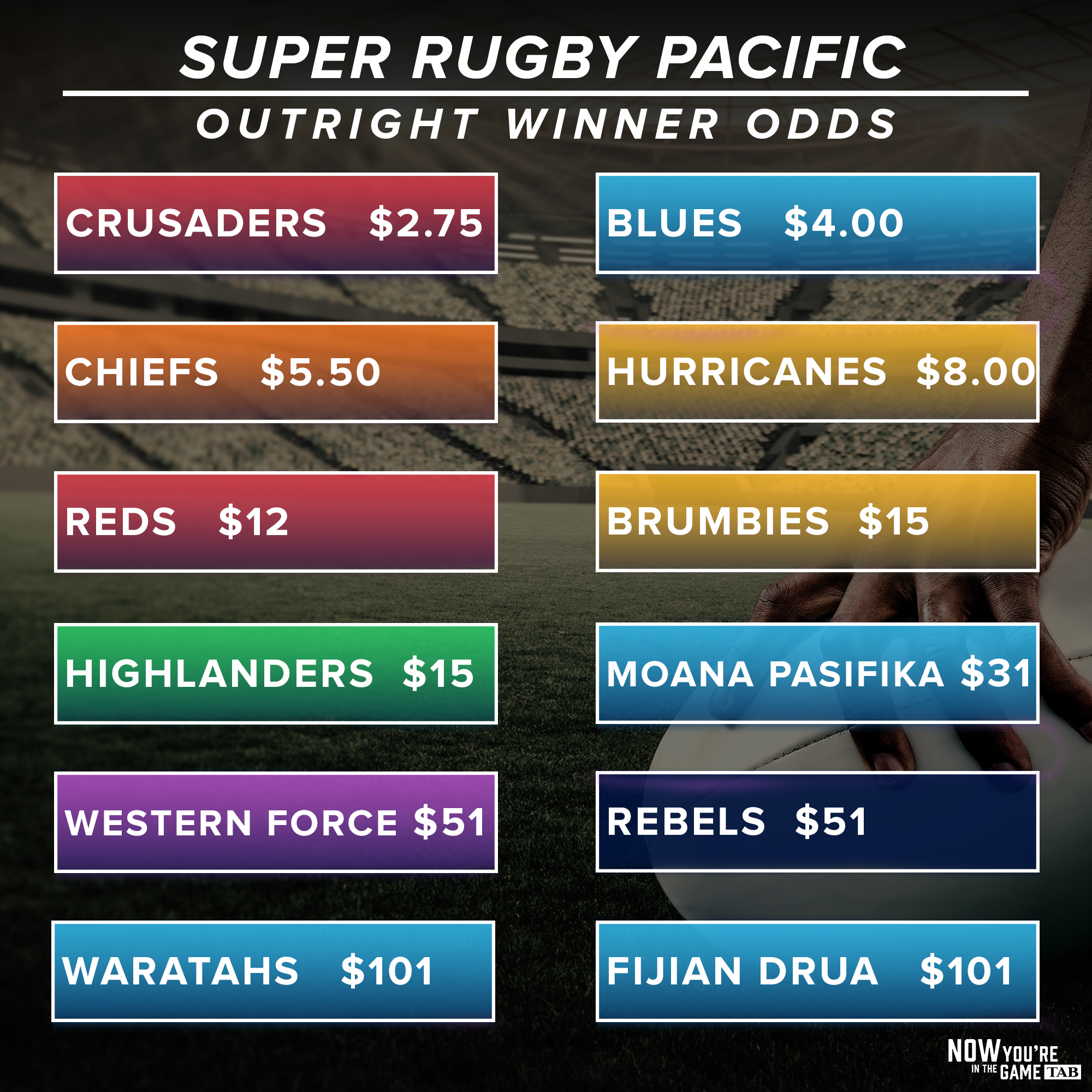 Aren't odds determined by where the money is going?That looks very Kiwi fan centred. MP (Moana Pasifika) in the top 8 is a huge call, but even moreso with all 5 Kiwi conference teams in the top 8.