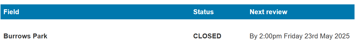 From the Subbies Ops Manual, under 10. GROUNDS UNFIT FOR PLAY