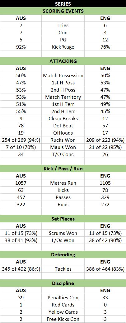 Michael Hooper - was probably only solid in the first two tests by his standards but had some excellent moments in the first test in key defensive plays. Was very good in the third particularly in the first half winning several turnovers (albeit not through pilfers). Thought his leadership through the series was good.