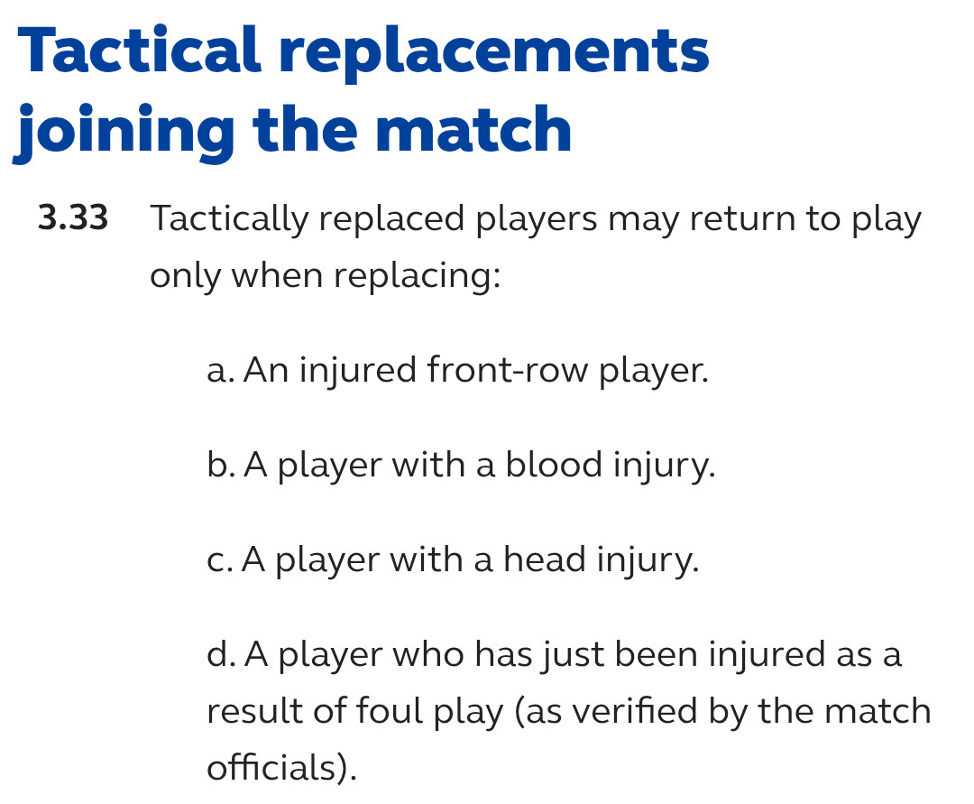 If that happens Ala'alatoa comes back on. Teams are allowed to bring their props back on to maintain contested scrums.