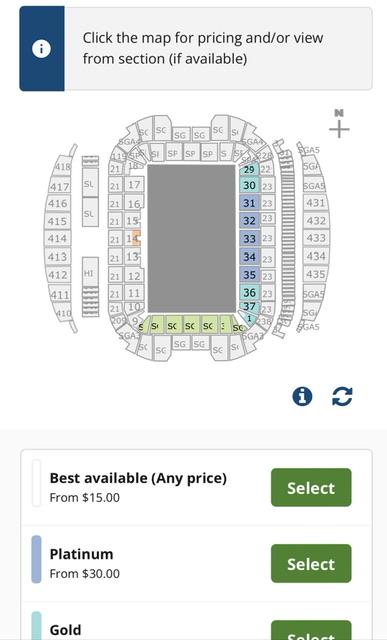 On Ticketek that’s all it’s allowing you to select.