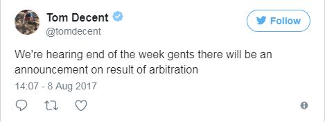 Thanks to Tex for asking the question. The strongest indication of an answer on arbitration that I've come across thus far.
