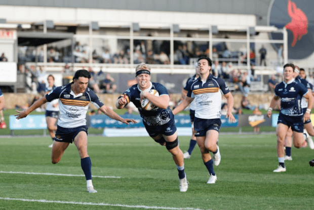 The Tahs opened the scoring early before the Brumbies replied through Kye Oates, the only difference being a shanked conversion. Then it turned into an old-fashioned arm wrestle until Ethan Dobbins crashed over from a rolling maul to edge the visitors clear. Cue McLeod. The First Nations Pasifika flyer got his first in Brumbies colours, then backed it up with a cracker just before oranges. Tahs still clung to a 21-17 lead at the half, but it was anyone’s game.