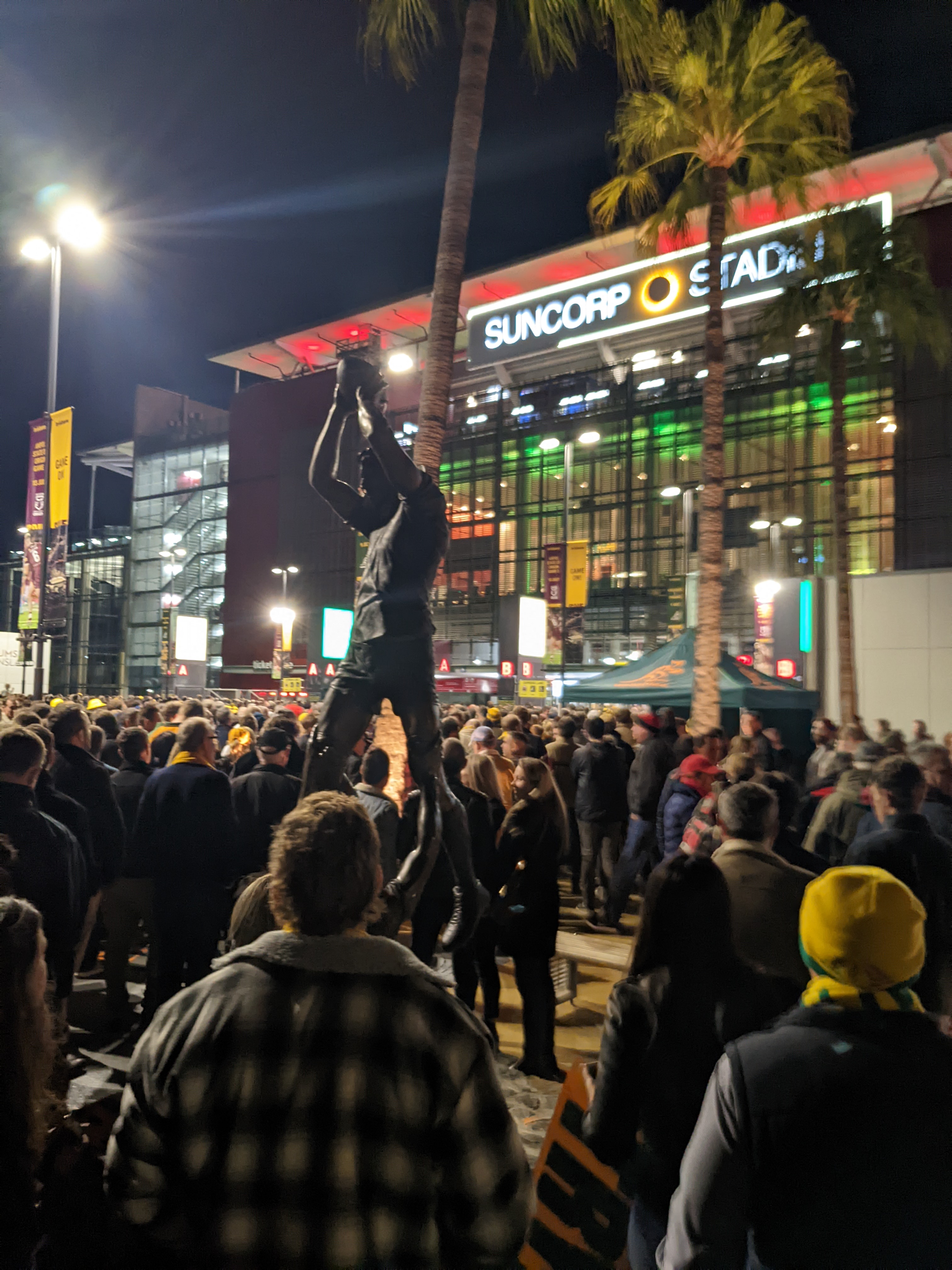 Can feel it in ma plums.Just had lunch around the corner from SUNCORP. Nice to see a few people getting around with wallaby supporter gear on. A few roses getting about too.