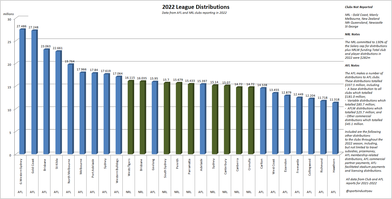 The Matchday and Membership and the Sponsorship and Revenue charts make for interesting comparisons too - the Reds fall somewhere between Cronulla and Sydney for matchday and memberships - ~3.6m for just the matchday value, ~4.8m if corporate hospitality is included (assuming membership is accounted for in their matchday value, it's not listed separately). Then for sponsorship they're just off the bottom chart (~5.5m):