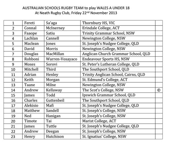 Clear but cold conditions greeted both teams at kick off for the clash between Australian Schools and Wales A under 18s at Neath Rugby Park.