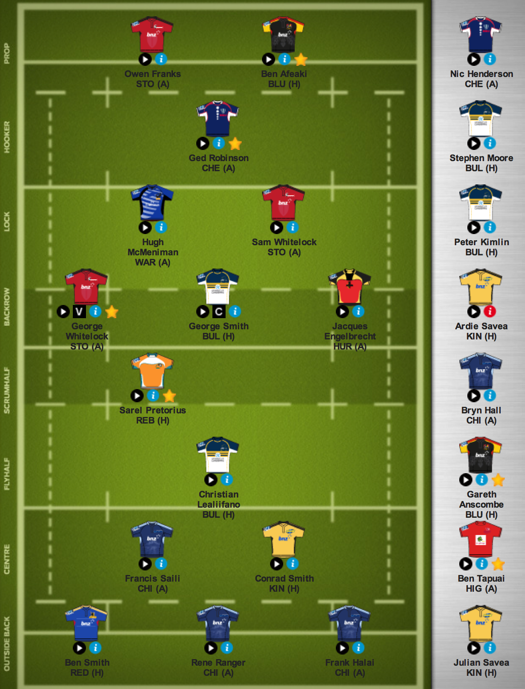 Here's my team for the week.....unless there are some major changes in the Brumbies line-up or something...