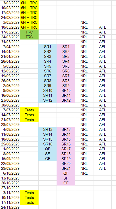 At the same time, you will be pushing potentially a less attractive competition (Super Rugby) to compete against with NRL + AFL which may ultimately result in even less eyeballs watching the sport even if there is an uplift at the start of the season with the Wallabies.