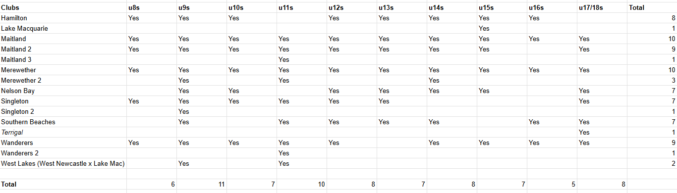 So I spent some spare time the last few days breaking down the juniors of Hunter Rugby this year.
