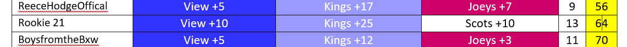 If you do not get them in, then the second team becomes your pick. (see below)