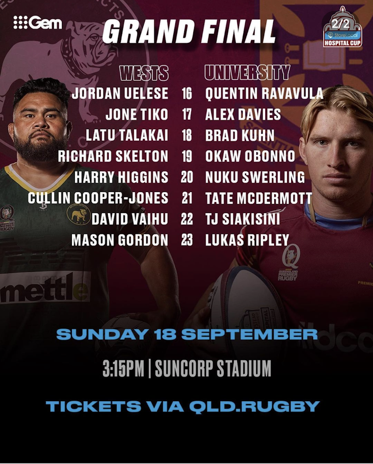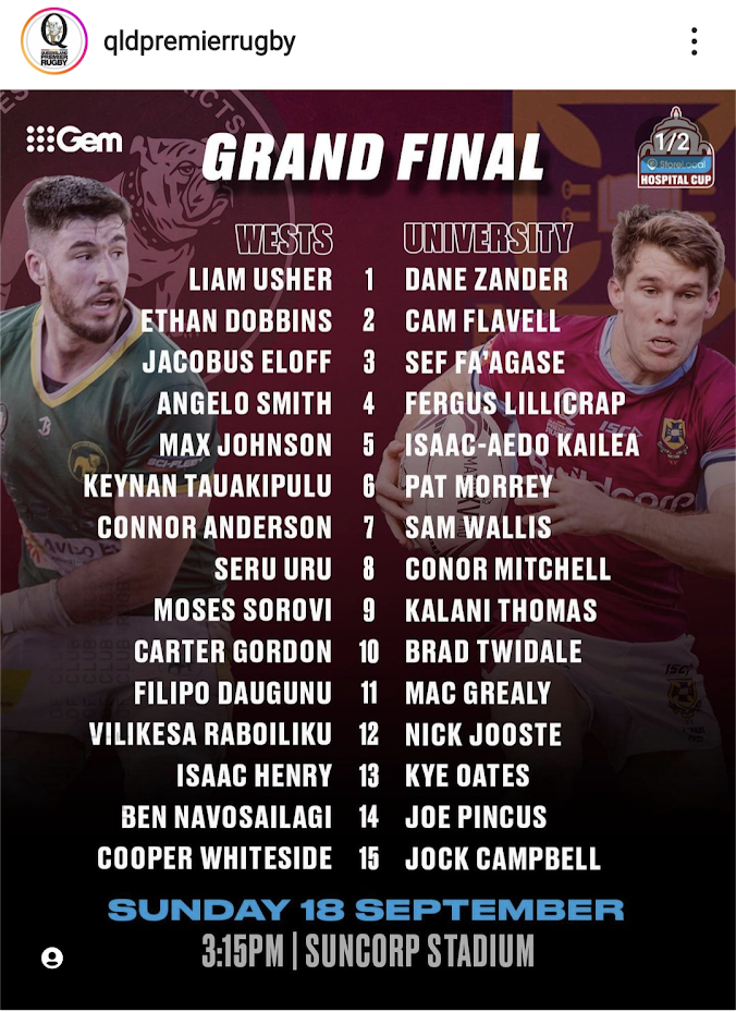 Looks like Wests have seen the light and are starting Dobbins. Uru shifts to 8 with Max Johnson coming in at lock and as mentioned earlier Carter Gordon is back at 10.