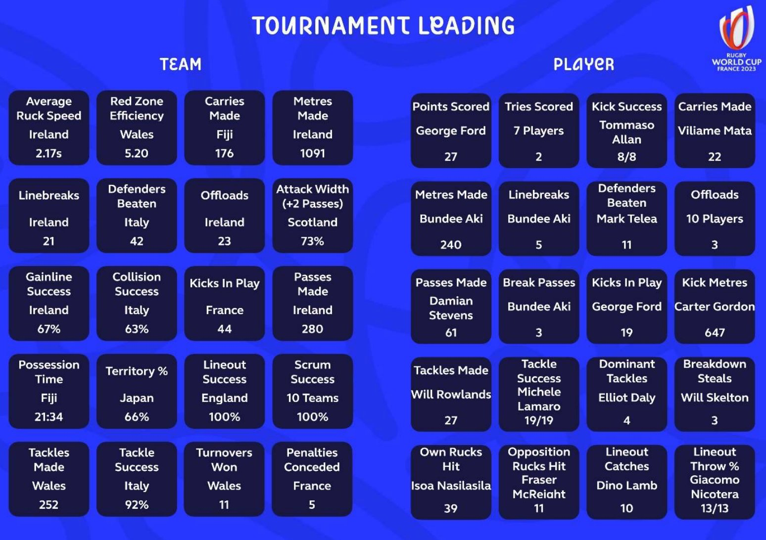 Skelton leads the cup for turnovers, Fraser McReight for opposition rucks hit and Carter Gordon for kick meters.View attachment 17497