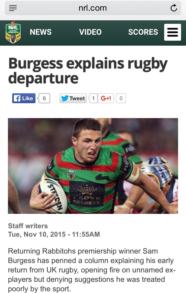 Would he really earn more in French rugby? I heard he's going to get $1.5 million at the Rabbits, there's no way he'd pull that in France.