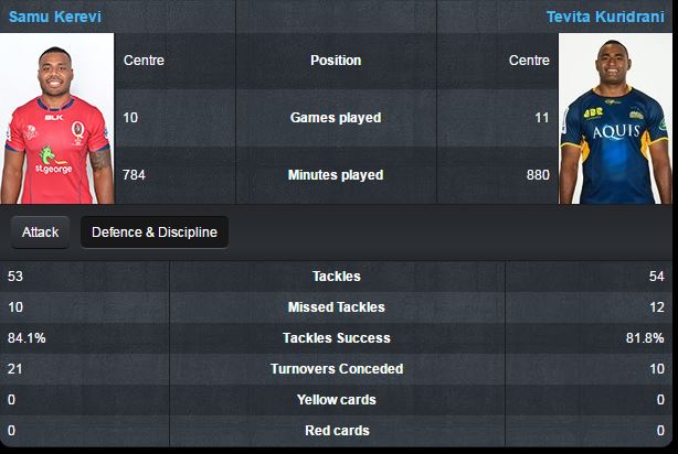 Agreed. They also play for teams with completely different playing styles and backline make-ups. At the Reds, there is a requirement for Kerevi to be creative and to take the opposition on, at the Brumbies (when To'omua is fit) TK is there to bend the line, make his tackles, occasionally slip into a whole (or force the over-committal of the oppositon and then release the playmaking backs). Very simplistic assessment, but you get my drift