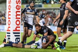Tevita Kuridrani, ‘The K Train’, celebrates in his signature style after scoring a try.